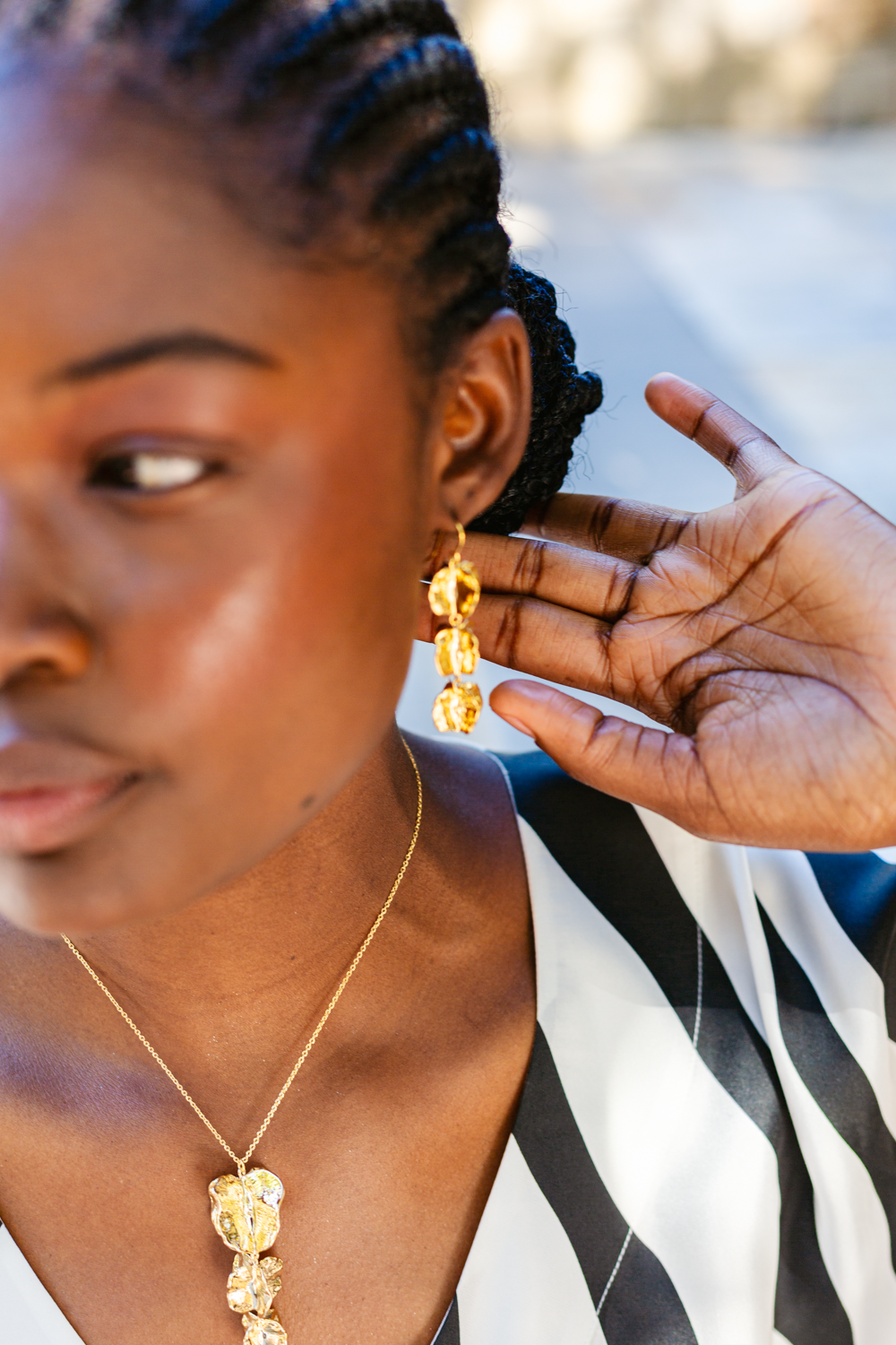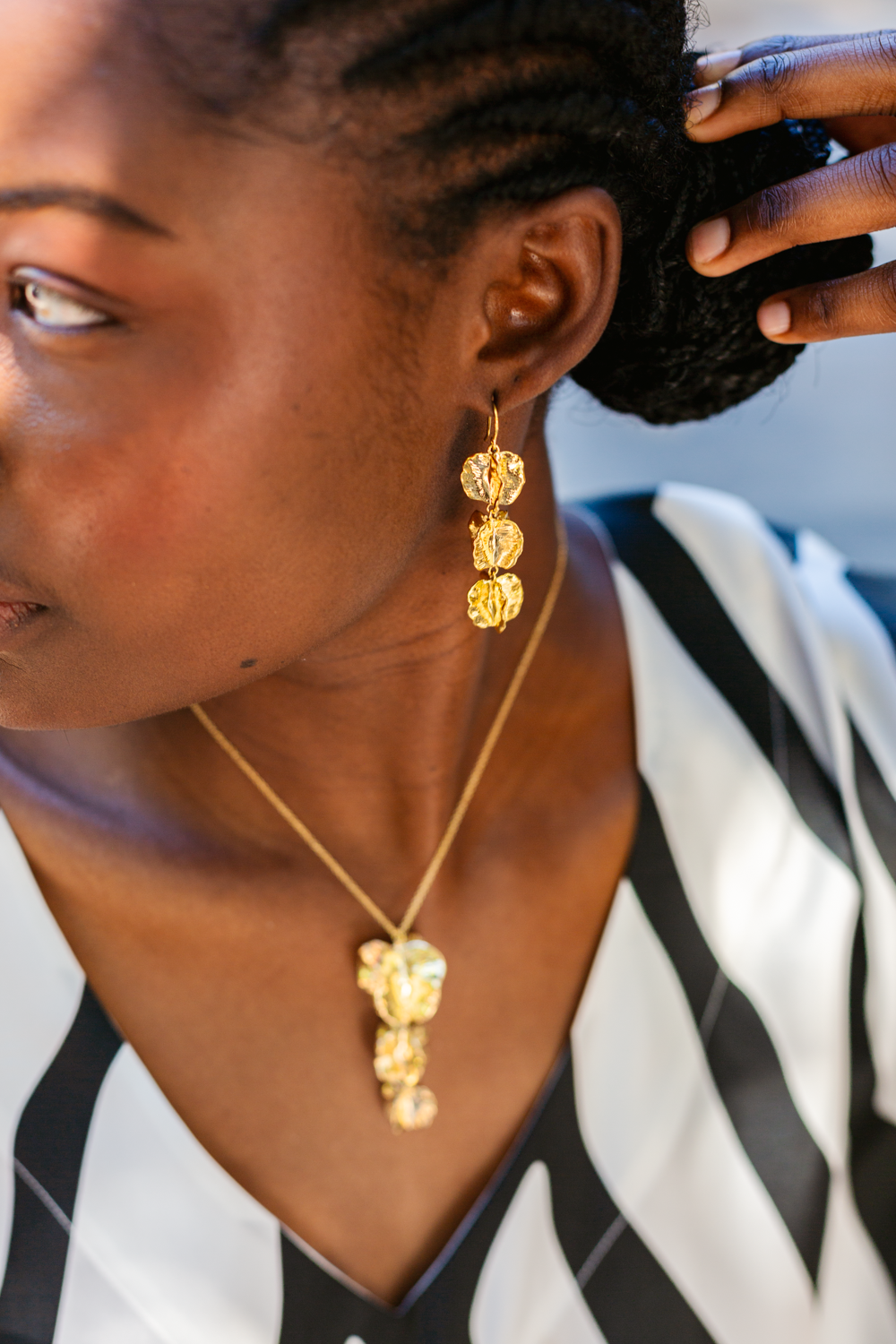 Take a bit of nature along no matter where your day takes you with these Eye-catching 18 carat gold plated Bushwillow raindrop trio. Designed by Heidi Steck. A beautiful trio of small Bushwillows crafted from the original Bushwillow seed. These earrings encapsulate the essence of Africa's natural beauty, making a bold and elegant statement.